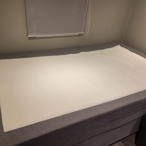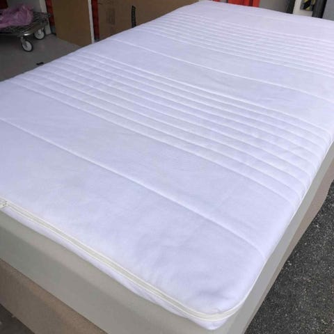 Helt ny og ubrukt rammemadrass innpakket i emballasjen fra Ikea inkl bein.