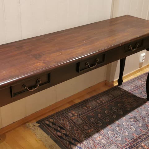 Kontorpult i tre seles billig da vi ikke får den med oss på nytt kontor. Den har skruer på bena for å sikre at den er i vater.