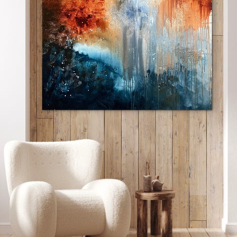 Abstrakt maleri inspirert av naturen og himmelen. Mye blåtoner.