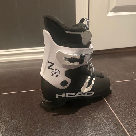 Head Z2 alpinstøvler i størrelse 210-215, med svart og hvit farge. Støvlene har spennefester og er designet for alpint bruk.