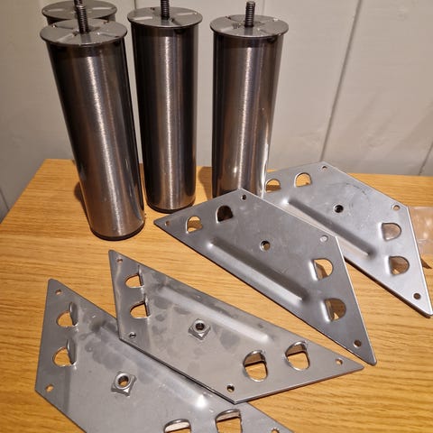 Ubrukte møbel bein 12 cm svart metall 14 stykk. Kjøper velger antall 200,- for 4 bein :)