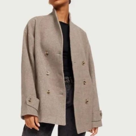 Neo Noir Andre jakker for dame i størrelse M. Jakken er beige og laget av fuskepels materiale. Den har knappelukking og to frontlommer med klaff.
