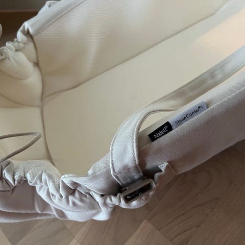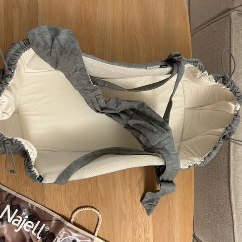 Pent brukt sleepcarrier fra Najell i fargen beige. Babynestet er uten synlige flekker eller bruksmerker og så klart nyvasket. Vi har hele tiden hatt vognpose eller pledd i babynestet. Vært utrolig fornøyd med denne,