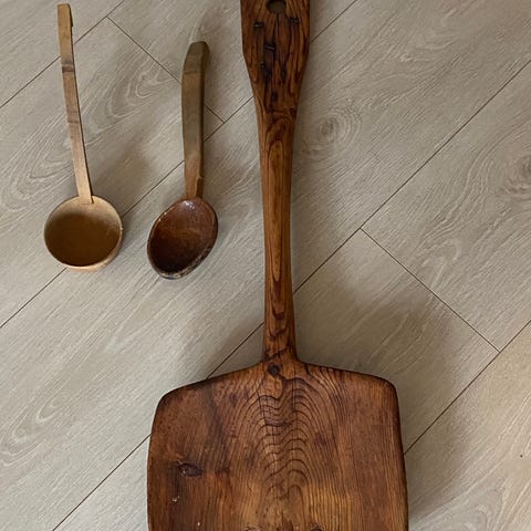 Gamle kjøkkenredskaper i tre.