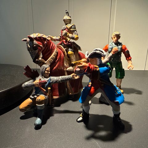 Actionfigur med dinosaur og rytter