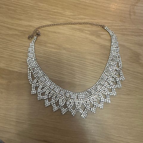 Queen halskjede gullfarget med krystaller. Helt ny