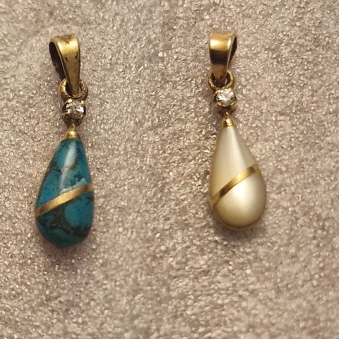 Til salgs: Nytt sett – øredobber og anheng med månesten – helt fantastiske! Rett fra USA, laget av en dyktig håndverker. De er laget med 14k gold‑filled wire og blir ikke mørke.