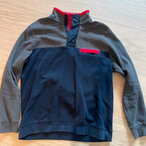 Blå/ grå herre genser str XL. Myk å god med god krage i halsen . Se bilder. Selges 200kr. Pluss frakt. Kan sende.