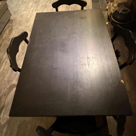 Fint og praktisk bord. Har vært brukt på kjøkkenet. Plate og solid konstruksjon i stål. Kan utvides slik at det passer til seks til åtte personer. Pent brukt.