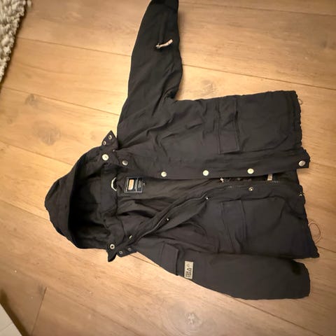 En nydelig,god og varm grå vinterdress med pels rundt hetten, fra Ver de terre i str. 6 år. Den er pent brukt av ett barn en sesong.