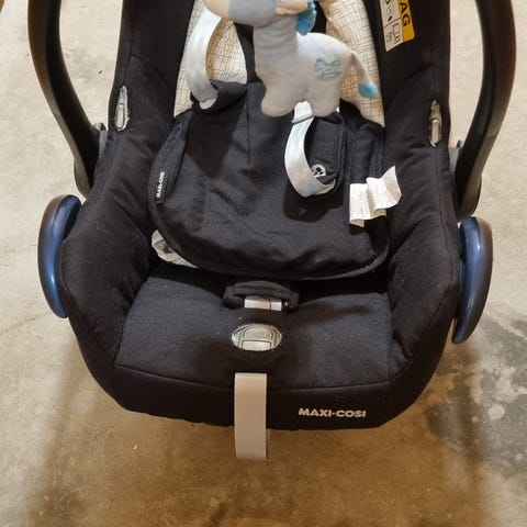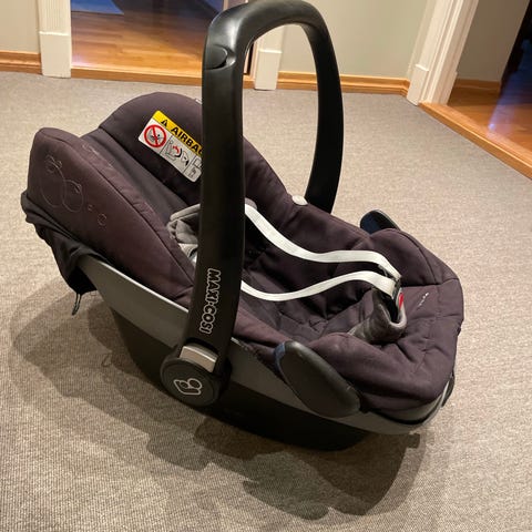 Selger et Max cosi Pebble Pro i-Size bilsete til baby. Pent brukt til 2 barn, kjøpt sent i 2023. Følger med base og nyfødtinnlegg.