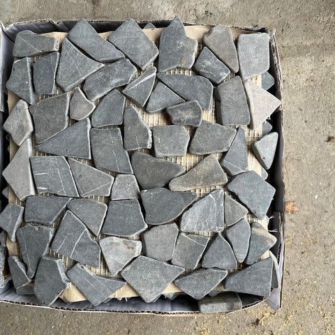 Flis aldri vært montert. Dekker ca 1.5 m2. 3 grå-toner. Kjøpt for ca.20 år siden. Blanderen/mixeren ca. 2 år gammel. Ubetydelig brukt.