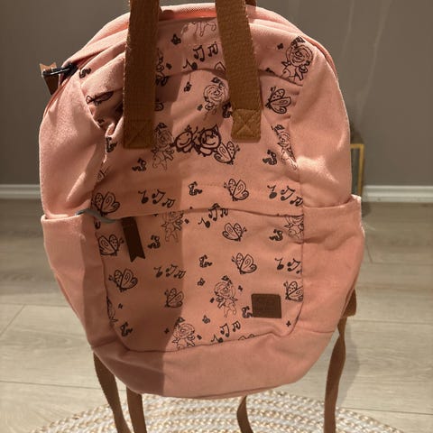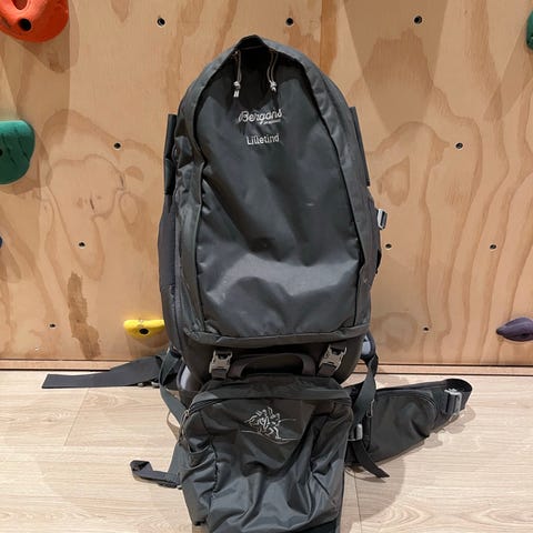 Har mistet båndet som man kan dra den med mitt barn har brukt den til å sitte på å gi fart med bena på flyplasser ol. grei å ha med på fly eller i bil
