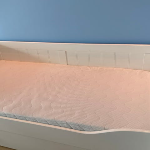 Enkeltseng fra Skeidar 90x200, ett år gammel, men brukt bare et par ganger. Den er veldig pent brukt, og ingen synlige bruksmerker, den er som ny. Vi har kjøpt både seng og føtter separat.