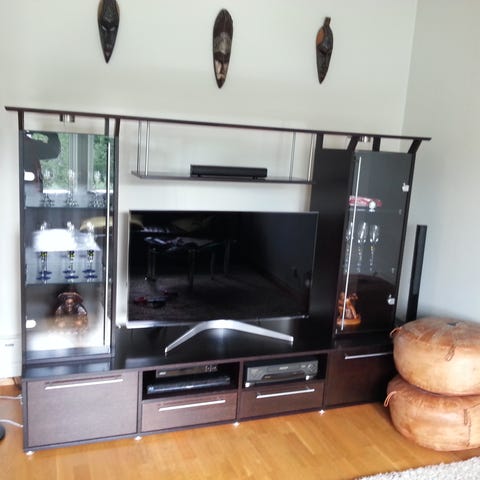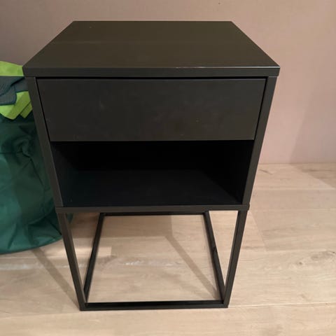 Tøff svart skjenk i jern selges. Kan ta av folien på glassdørene. Selges råbillig pga flytting