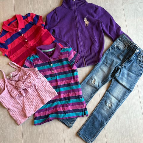 Klespakke med mange fine klær som er pent brukt,noe er godt brukt. Str 116-128