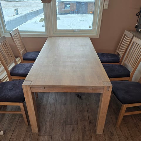 Heltre eik, spisebord med 6 stoler.