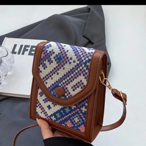 Skulderveske i brun farge, laget av stoff 🤎