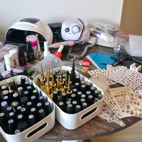 Uv gel + So polish + neglelakkfjerne ++ (mange år gamle, så vet ikke om det kan brukes).