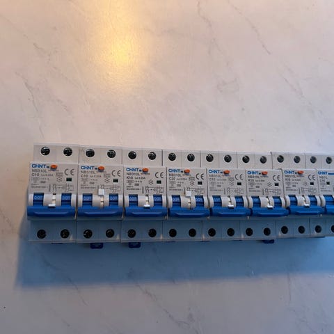1 stk 20Amp. Moeller B kar. 1 stk, Schneider 15 Amp. C kar. 2 stk. 13 Amp. Schneider C kar. 1 stk. 10 Amp. Gewiss. 150 pr. stk.