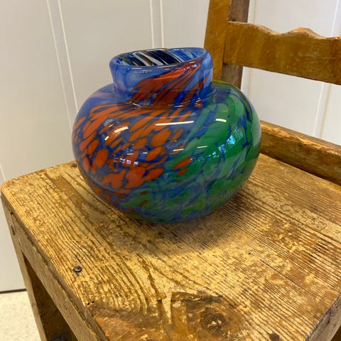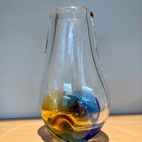 Selger en ikonisk og svært dekorativ «Face»-vase (ansiktsvase), designet av den anerkjente tsjekkoslovakiske glasskunstneren Adolf Matura i 1972. Vasen ble produsert ved glassverket Libochovice (en del av Sklo Union).