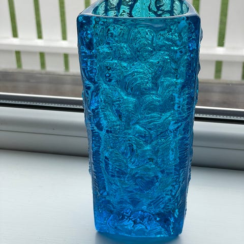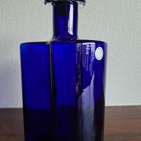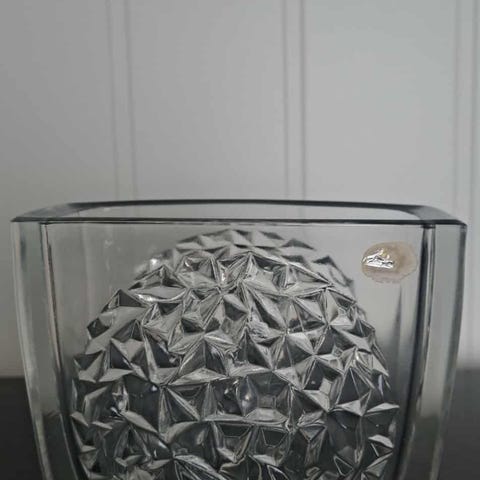 Dette er et moderne mesterverk innen mid-century glasskunst, kjent for sitt stiliserte ansiktsmotiv og kubistiske preg. Vasen fanger lyset vakkert og er et ekte blikkfang i ethvert interiør.