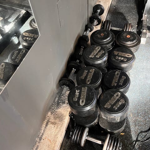 Stangen til boksesekken har blitt kuttet litt pga høyden og får å få plass til den iforhold til tak.