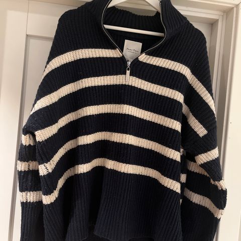 Sort genser fra Part Two i 70% mercerisered ull og 30% silke. 3 trukne pynte knapper på venstre skulder. Bryst 100 cm lengde 59 cm.
