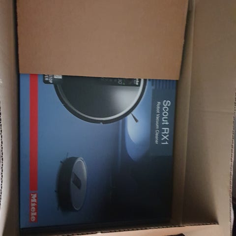 Oppladbar , håndholdt støvsuger . Esken er åpnet , men støvsugeren er ikke pakket opp eller brukt . Koster 7399,- kr på Miele.no