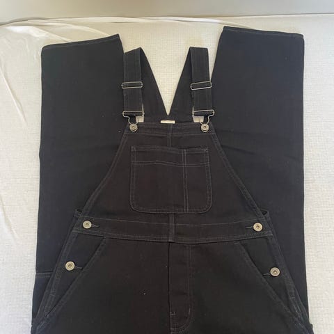 ONLY Dongeribukse i størrelse XS, fargen svart, laget av bomull. Designet for kvinner, med justerbare stropper og lommer foran.Brukt to ganger.