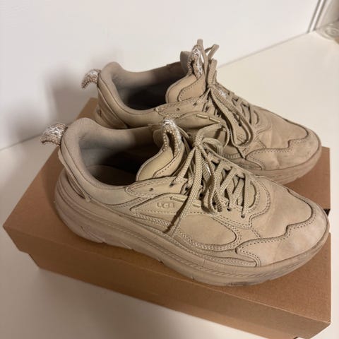 UGG Sneakers joggesko i størrelse 42 med brun farge. Skoene har en robust såle og er designet for komfort og hverdagsbruk. Kun prøvd på inne. Eske følger med. Selges da størrelsen ikke passer.