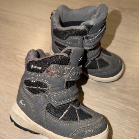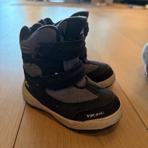 Viking barne vintersko i størrelse 23, designet for unisex bruk. Skoene har borrelåslukking for enkel justering og god passform. Materialet kombinerer slitesterk tekstil og syntetiske elementer, med en solid gummisåle som gir godt grep. Skoene er egnet for kaldt vær og vinterbruk.