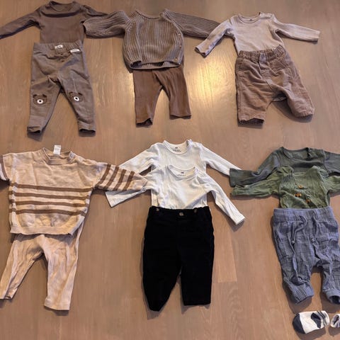 Lindex barneklær for gutt i størrelse 62 med flerfarget design. Inneholder ulike plagg egnet for små barn.