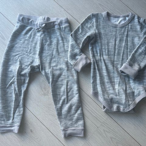 Brukt sett i body og longs i ull. Kjønnsnøytralt i grå og gult.
