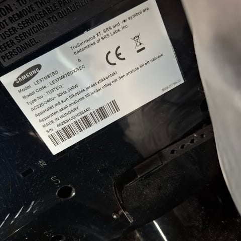 Samsung TV med støtte for HD og DVB. TV-en har tilkoblinger for kabel og Boxen. Skjermstørrelse og spesifikt modellnummer er ikke oppgitt.