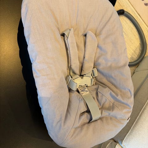 Stokke nyfødtsete med bøyle. Trekket er nyvasket og klart for nytt barn 💫