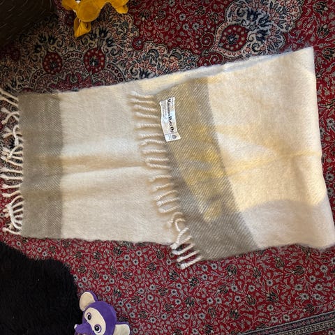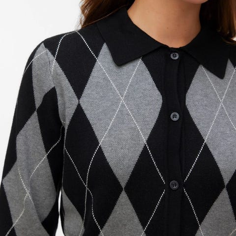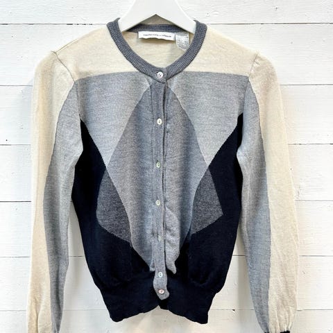 Kul genser i grått og blått rutemønster. Passer XS-M dame. Boxy fit.