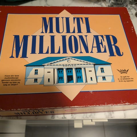 Multi Millionær brettspill, komplett med alle kort, aksjer brikker og spilleregler.