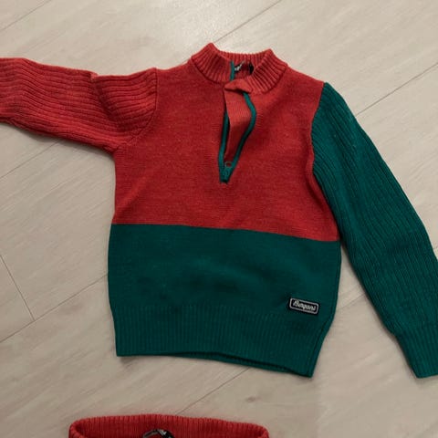 Laget i ullmateriale, egnet for både gutter og jenter. Settet består av overdel og underdel, designet for å gi varme og komfort ved bruk.