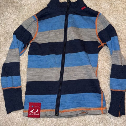 Bergans ullundertøy i blå farge, størrelse 104 for barn. Selges rimelig da det er hull i buksa.