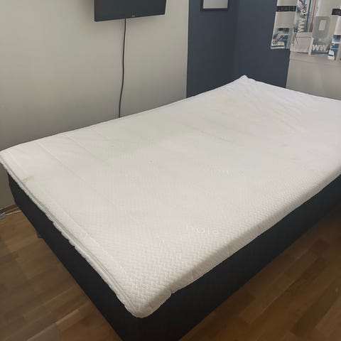 Madrass medfølger, men ikke overmadrassen. Andre ting på bildene medfølger heller ikke.