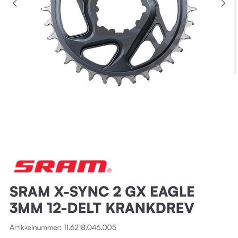 SRAM Krankdrev 38 tenner offset 6mm