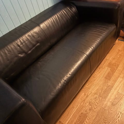Har en skade på ene sitteputen men forige eier har tapet over med svart gaffatape.