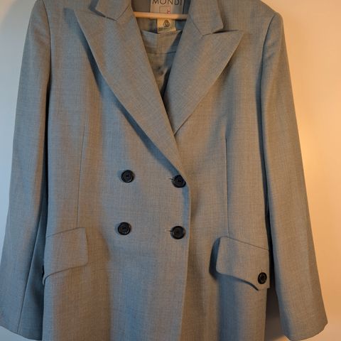 Sett m/blazer og bukse i tidløst design, kjøpt på Aker brygge tidlig 90 tall. Fremstår i god stand ifht alder og materiale. Gir en røff men samtidig elegant stil. Fargen er dyp lilla, noe lysere sømmer. Reptil/slangemønstret.