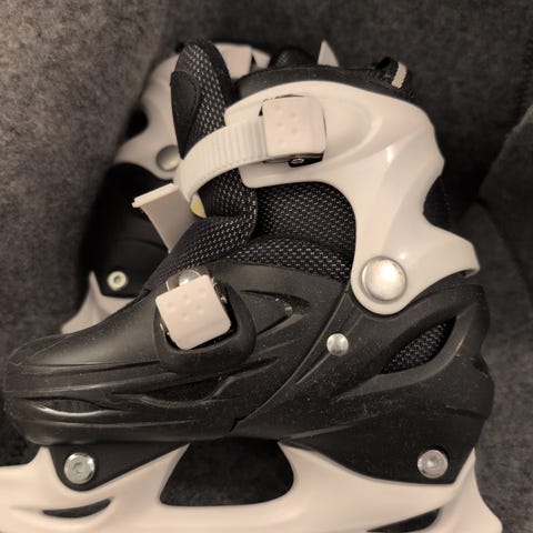 Regulerbare skøyter for barn i størrelse 30- 33. Skøytene har spenner for justering og støtte.