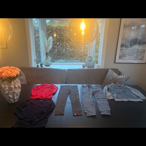 De tynne ullgenserene har noen små hull i halsen, buksene er fine og hele ( se bilder)