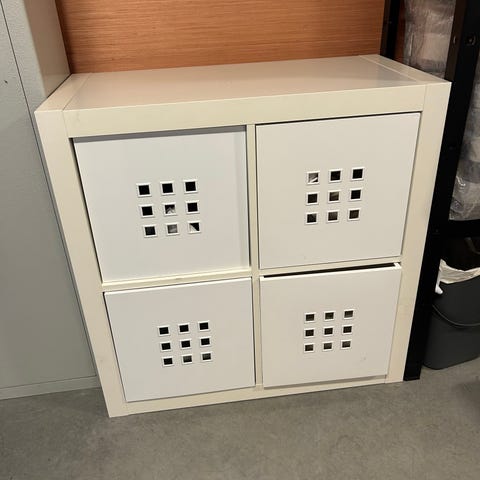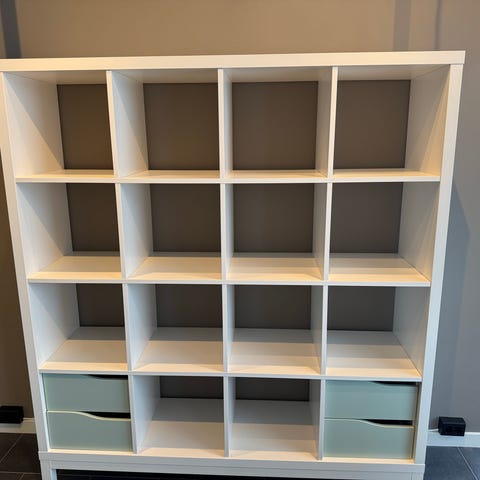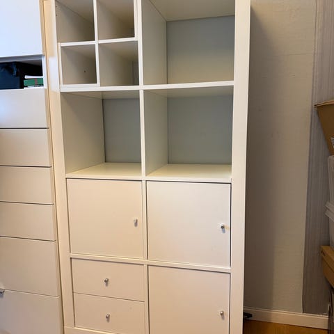 Med tilhørende skuffer, skap og oppbevaringsbokser.