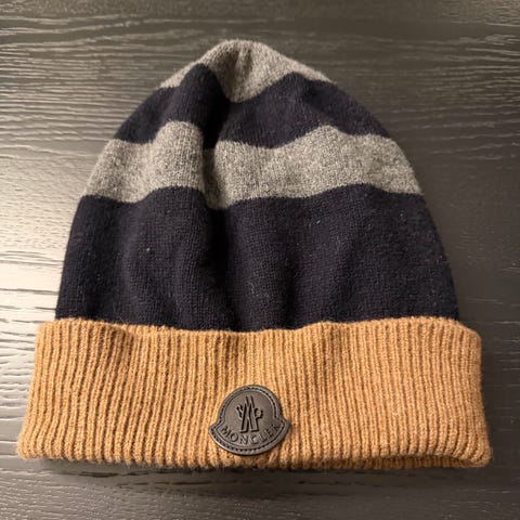 Selger en original Moncler lue i klassisk grå farge.