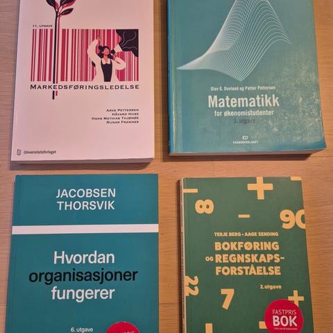 Diverse pensum fra 1.- 6. semester ved Økonomi og administrasjon ved NTNU. Alle bøkene er pent brukte, noen ubrukte. Markeringer finnes noen steder i bøkene men alle er fullt leselig.