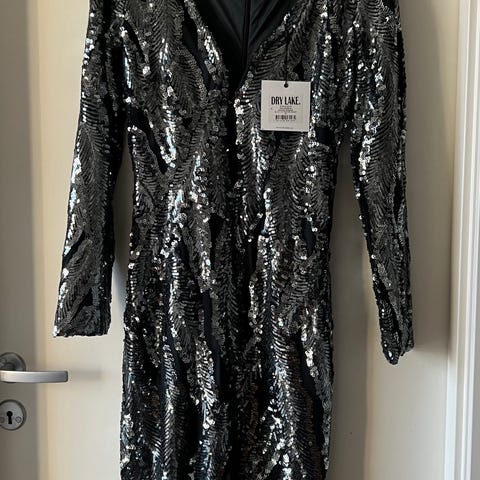 Dry Lake pajettkjole i sølv. Det står str. L, men bedre passer str. M